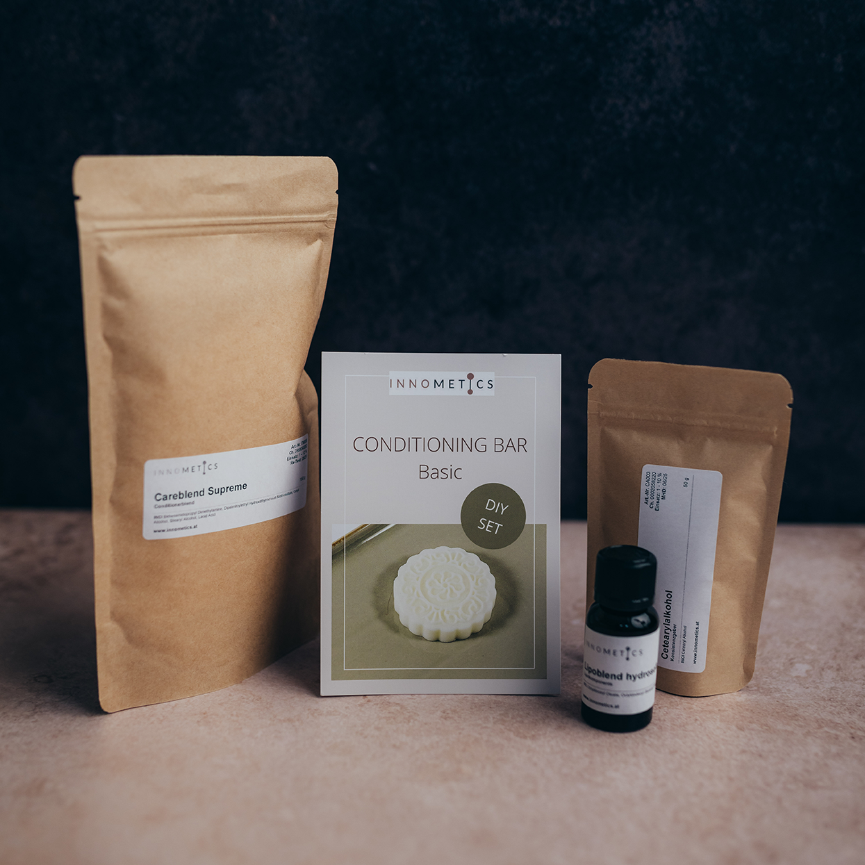 Mit diesesm Set von Innometics stellst du deinen festen Conditioner selber her. Zum verschenken oder selber rühren. Für Geschmeidigkeit, Glanz. Schützt die Haarfarbe vor dem Verblassen. Keine Vorkenntnisse nötig.